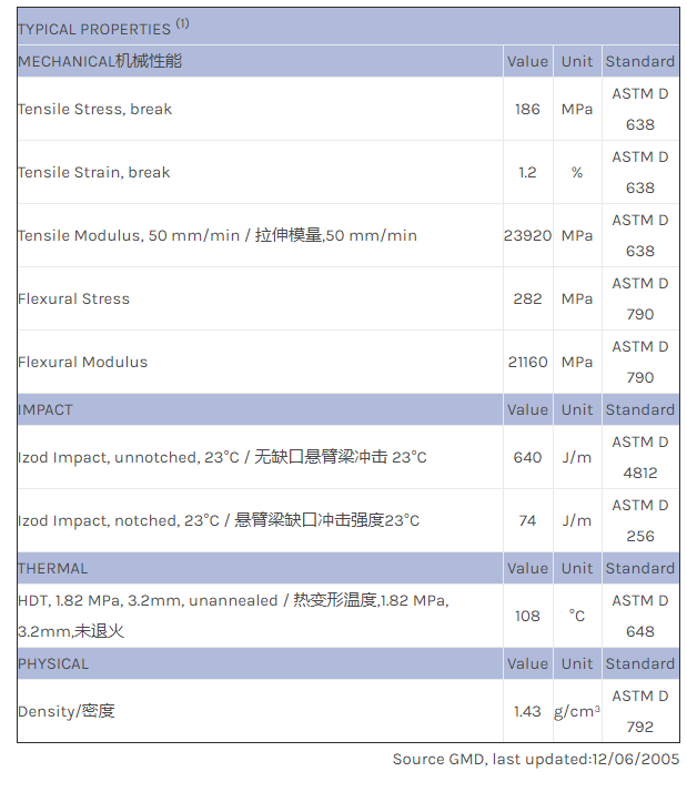 应用范围: 产品描述 LNP THERMOCOMP OC006物性表 LNP THERMOCOMP OC006是一种线性聚苯硫醚产品,含有的填充物为30%碳纤维增强材料,可以通过注射成型进行加工。 特性包括: 传导性 线性聚合物结构