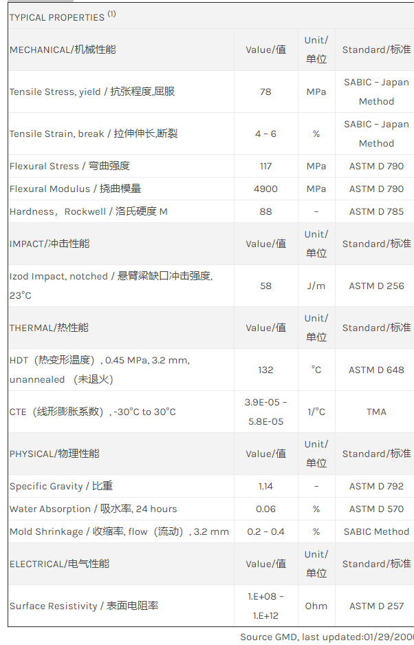 应用范围:产品描述Noryl PPO NC208物性表NORYL NC208 resin是一种聚苯醚+PS(PPE+PS)材料,该产品在亚太地区有供货。相关颜色色号:NC208-BKNATProperty/特性