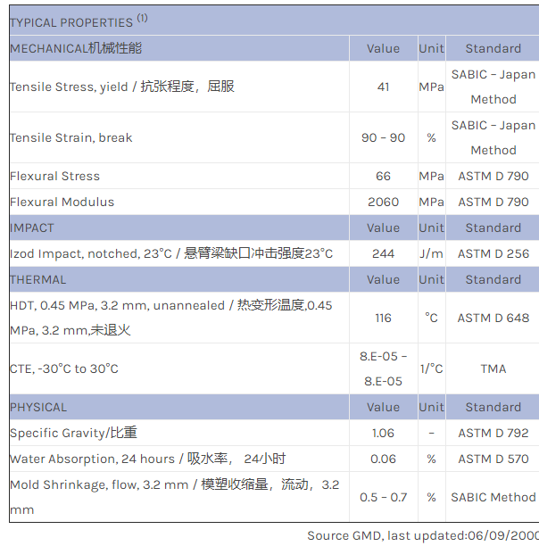 应用范围:产品描述NORYL PPO EBN9001物性表