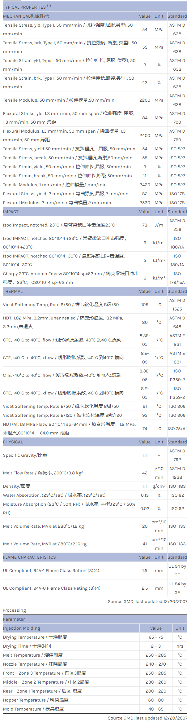 NORYL FP3060 resin是一种聚苯醚+PS(PPE+PS)材料,加工方式为:注射成型。