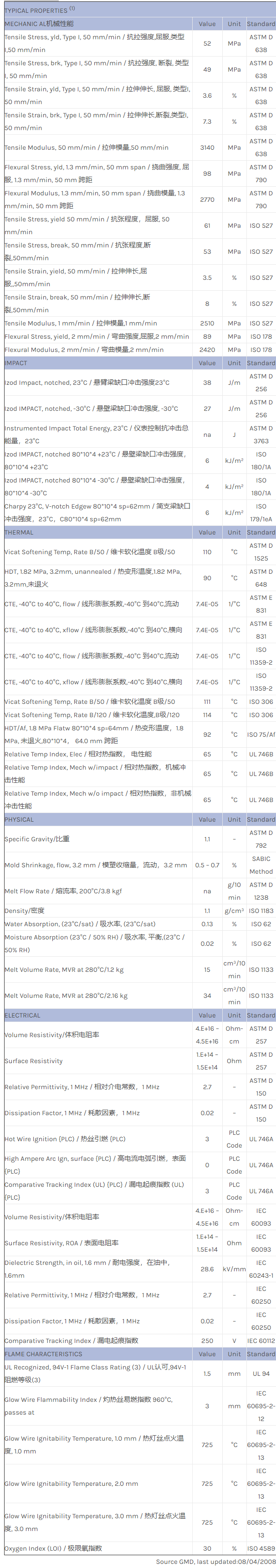 应用范围:产品描述NORYL PPO FP6130物性表NORYL FP6130 resin是一种聚苯醚+PS(PPE+PS)产品,应用领域包括房屋和工程/工业配件。特性包括:阻燃/额定火焰Flame Retardant无卤素高流动性良好的尺寸稳定性