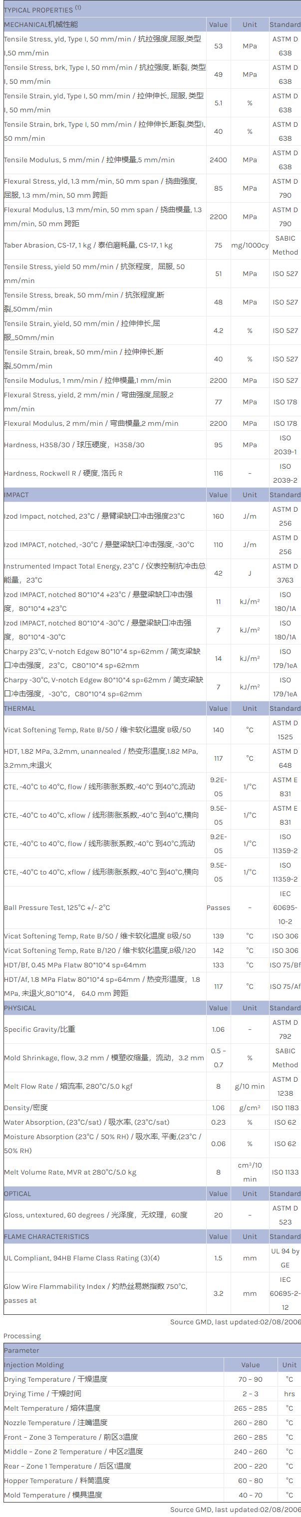 NORYL FXN119BK resin是一种聚苯醚+PS(PPE+PS)产品,可以通过注射成型进行加工。