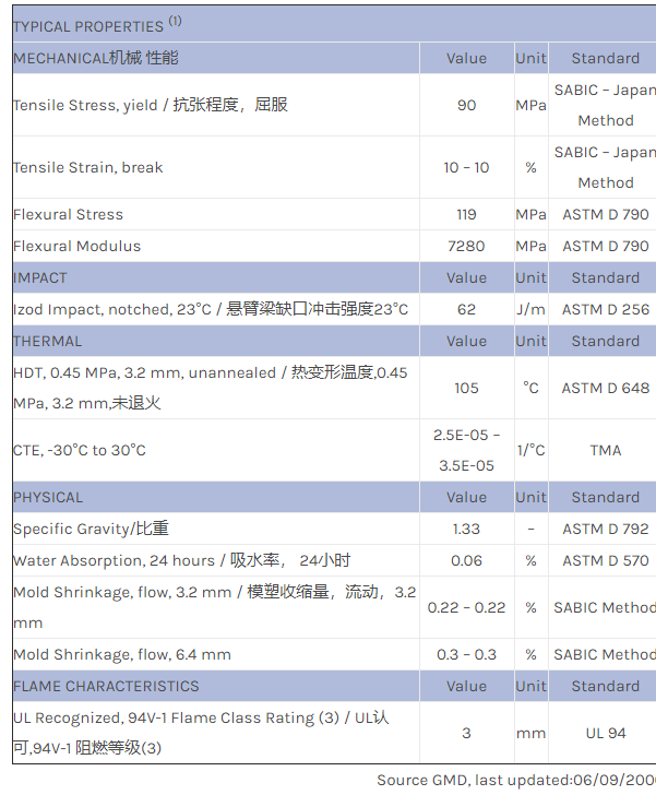 应用范围:产品描述NORYL PPO HFM3010物性表