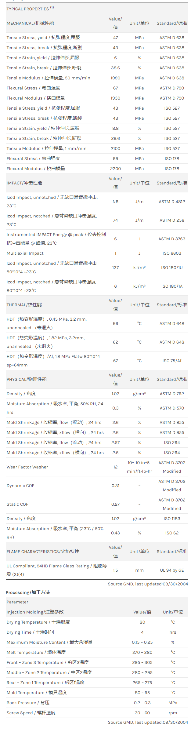 应用范围:产品描述 LNP Lubriloy R2000A物性表 “LNP LUBRILOY R2000A compound是一种聚酰胺66(尼龙66)材料,加工方式为:注射成型。 LNP LUBRILOY R2000A compound的主要特性有: 阻燃/额定火焰 润滑” 相关颜色色号:R2000A-GYMDNAT LNP LUBRILOY* R2000A is a compound ba