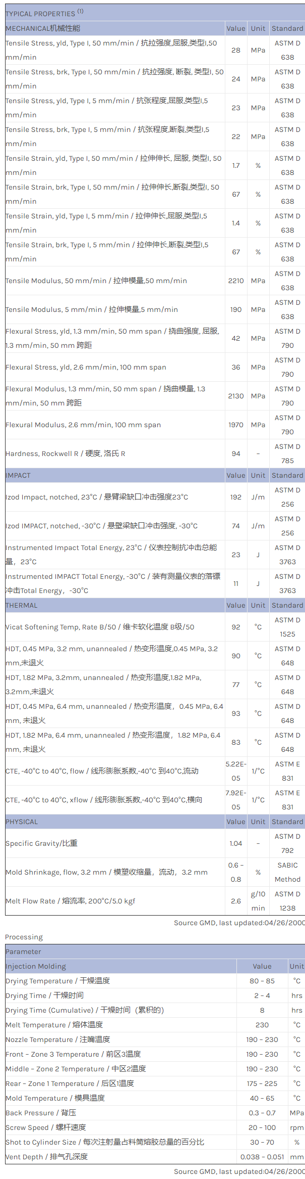 应用范围:产品描述NORYL PPO MX5593物性表Will be commercialized as HIPS3190 on a color by color basis. Impact modified polystyrene.
