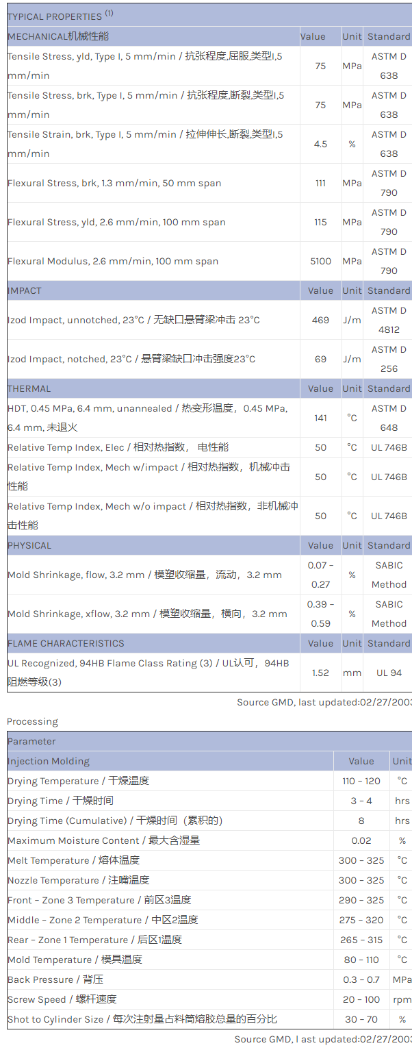 肇庆NORYL PPO MX5594物性表