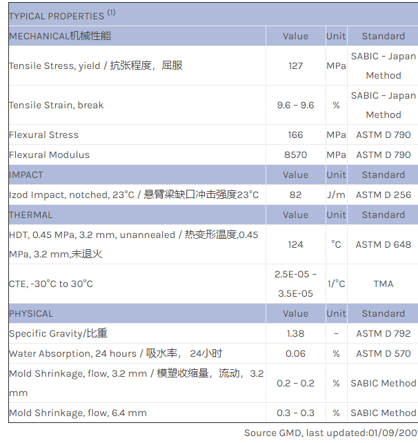 应用范围:产品描述NORYL PPO PCN2815物性表
