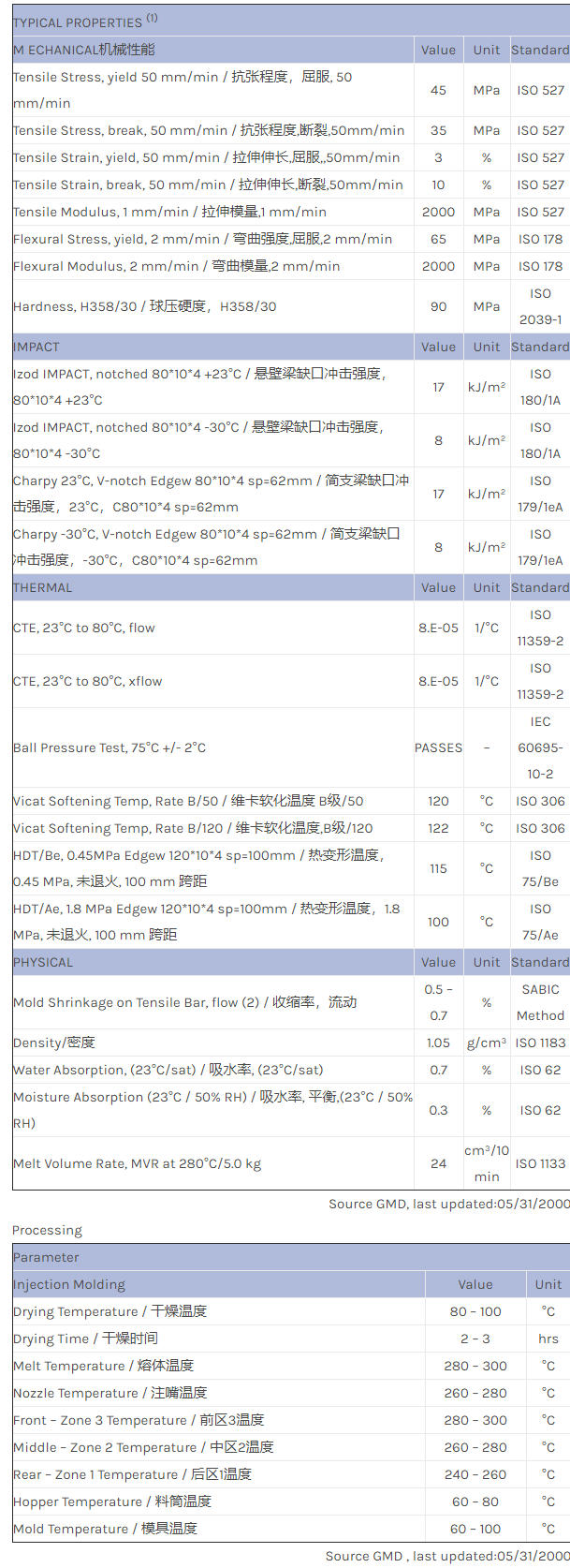 应用范围:产品描述NORYL PPO PO2355B物性表NORYL PO2355B is an unfilled, medium heat, low odour and low emission material with excellent heat aging performance. It has been developed for automotive interior applications