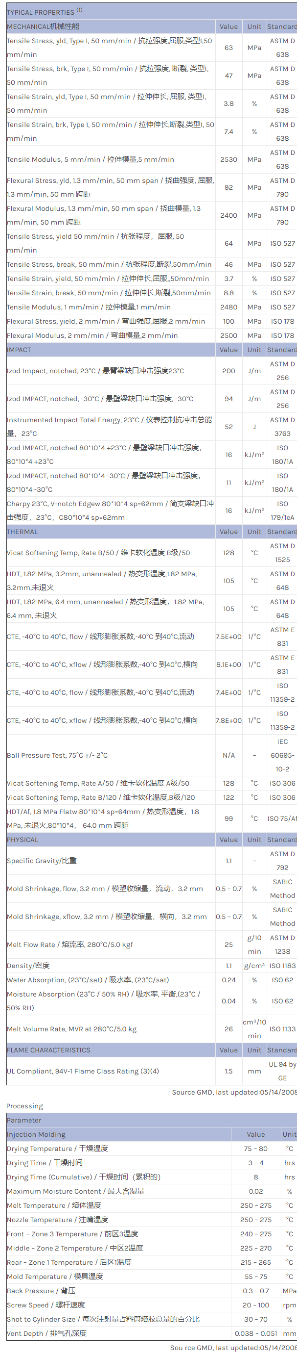 应用范围:产品描述NORYL PPO PVX1051物性表Multi Purpose V1 Grade.