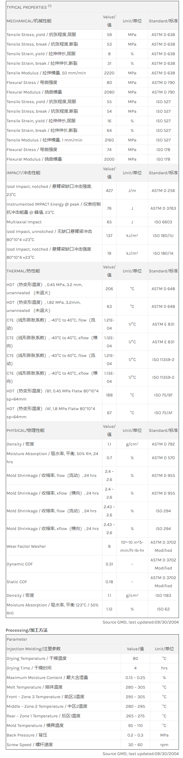 应用范围: 产品描述 LNP Lubriloy RX05498物性表 “LNP LUBRILOY RX05498 compound是一种聚酰胺66(尼龙66)材料,加工方式为:注射成型。 LNP LUBRILOY RX05498 compound的主要特性有: 耐冲击 润滑” LNP LUBRILOY* RX05498 is a compound based on Nylon 66 resin