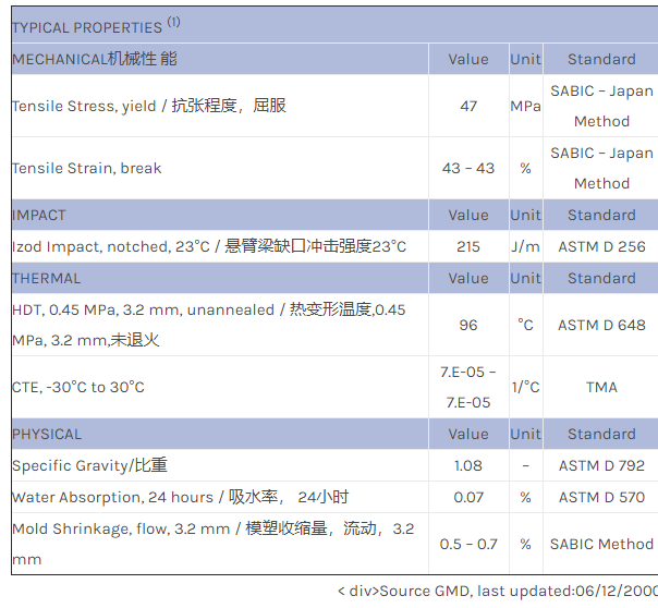 应用范围:产品描述NORYL PPO PX2801X物性表