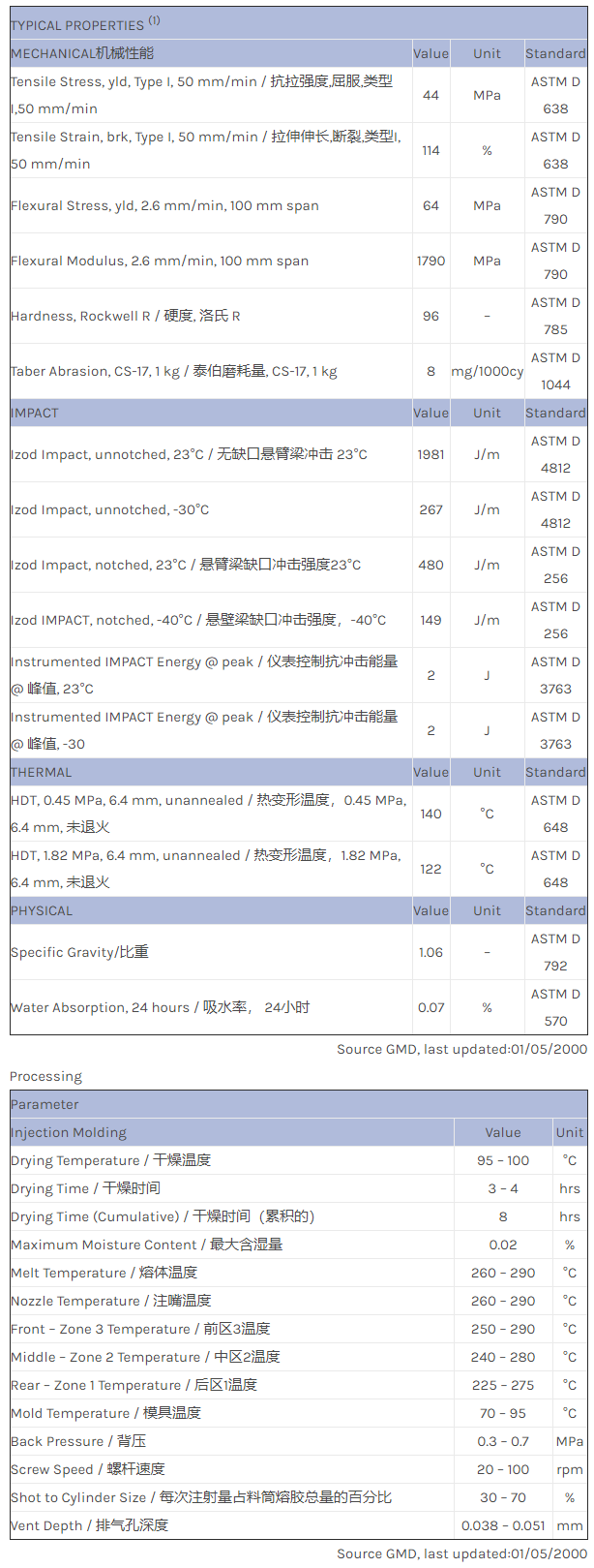 应用范围:产品描述NORYL PPO PX4058物性表PPO、聚烯烃共混物。改良的耐化学剂性。HDT(热畸变温度):253F (125C) 。