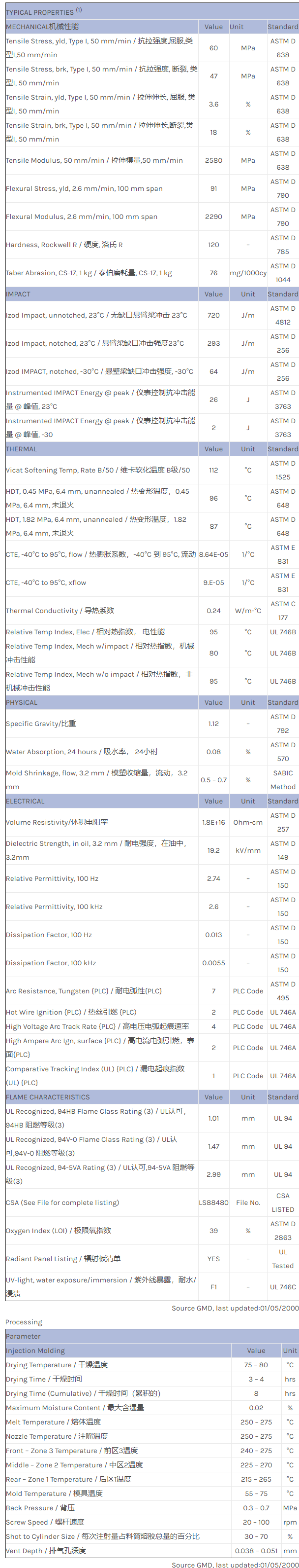 应用范围:产品描述NORYL PPO PX4271物性表PRELIMINARY DATA.