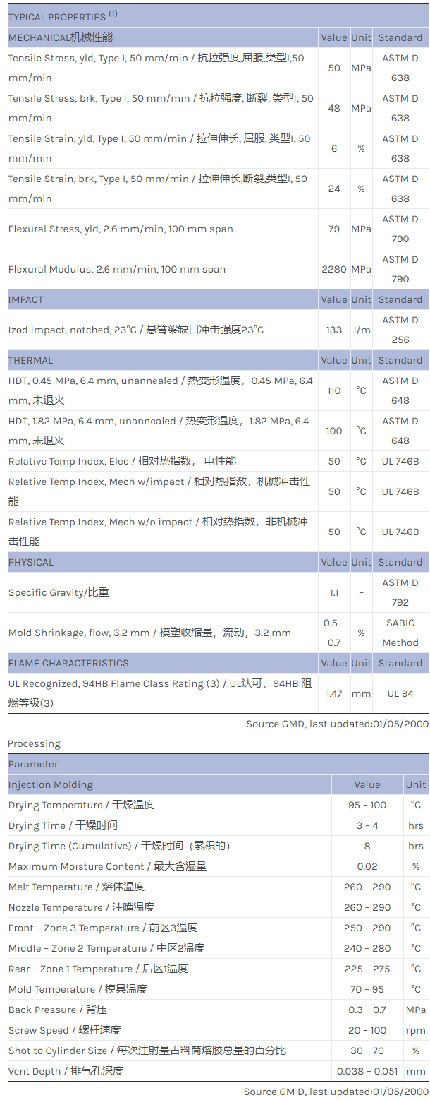 应用范围:产品描述NORYL PPO PX4685物性表Unfilled. 212F (100C) HDT. Available in midnight black and misty brown only. UL94 HB rated.