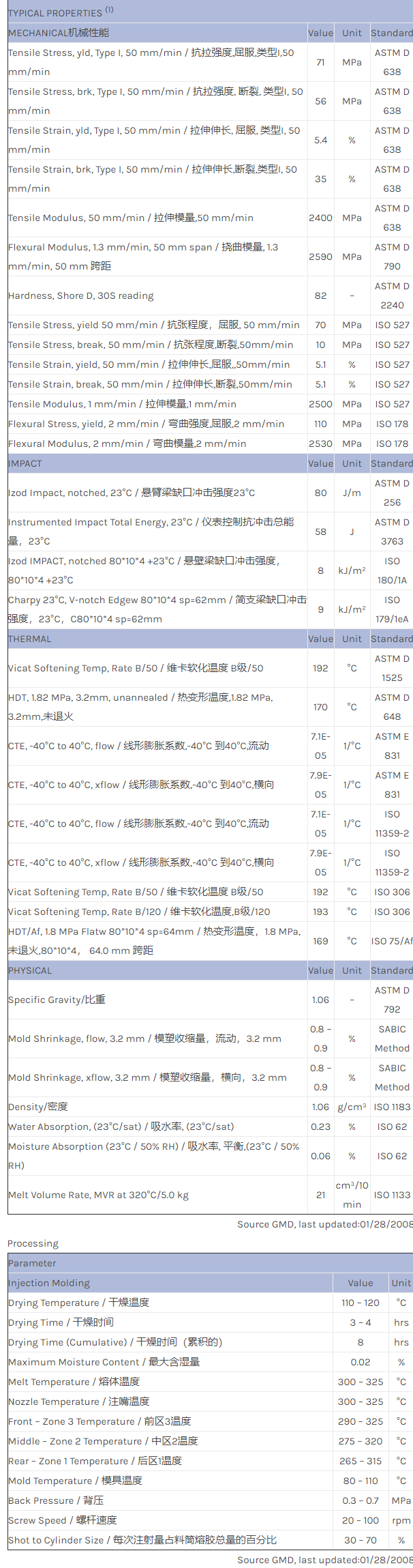 应用范围:产品描述NORYL PPO PX500物性表NORYL PX500 resin是一种聚苯醚(PPE)材料,加工方式为:注射成型。主要特性有:良好的尺寸稳定性耐热无气味/无味道