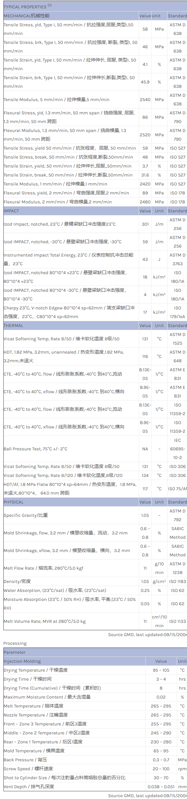 应用范围:产品描述NORYL PPO PX5511物性表PPE+PS blend. Unfilled. Chemical resistance. Creep performance. Low water absorption. Hydrolytic stability. Dimensional stability. Available in VisualFx.相关色号:PX5511-BL5E084、PX55