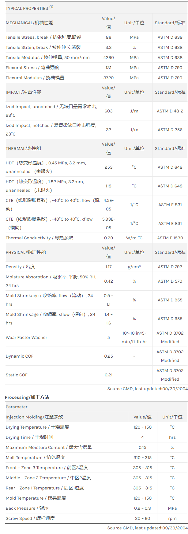 “肇庆LNP LUBRILOY UA200A compound是一种聚二甲苯酰胺(PPA)材料,含有的填充物为芳族聚酰胺纤维,加工方式为:注射成型。