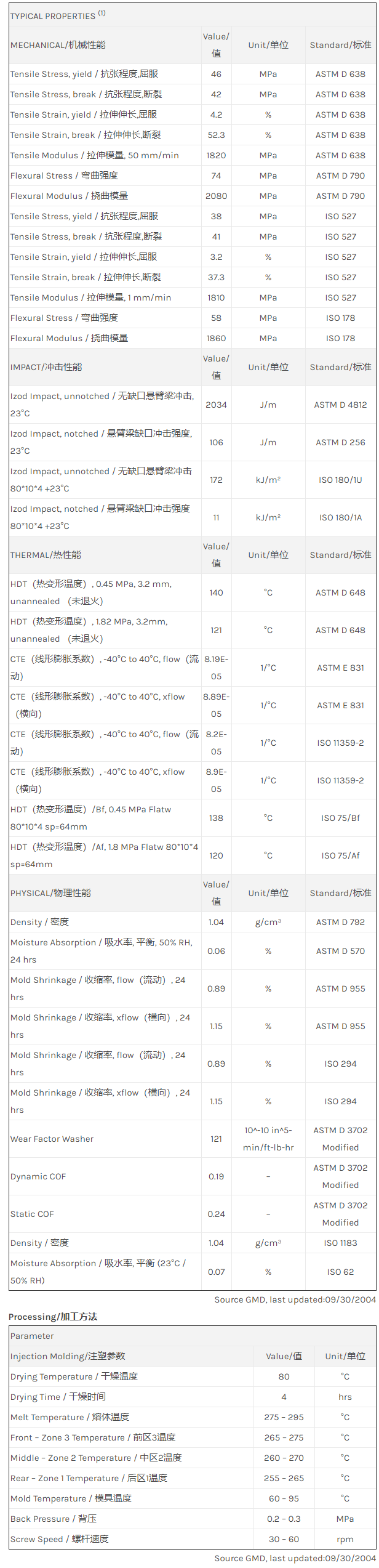 “肇庆LNP LUBRILOY Z2000 compound是一种聚苯醚+PS(PPE+PS)材料,加工方式为:注射成型。