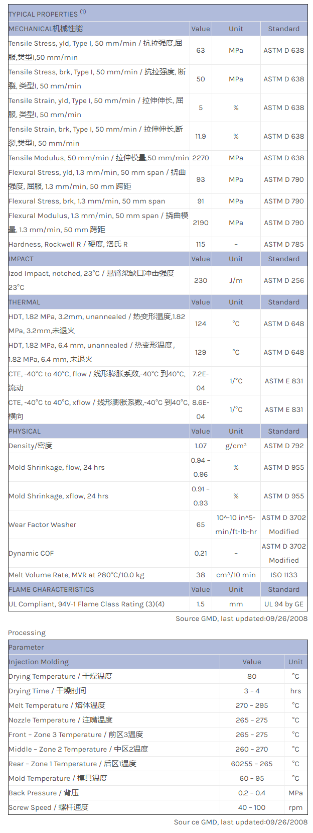 应用范围: 产品描述 LNP LUBRILOY ZX06315物性表 LNP* Lubriloy* ZX06315 is a compound based on PPE+PS Blend resin containing Flame Retardant, Proprietary Lubricant. Added features of this material include: Internally