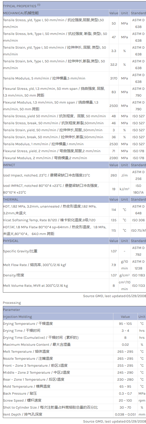 应用范围:产品描述NORYL PPO PX7908物性表PPE+PS blend. Unfilled. Chemical resistance. Lower Creep performance compared to PX5511. Low water absorption. Hydrolytic stability. Dimensional stability. Colors need PM Approv