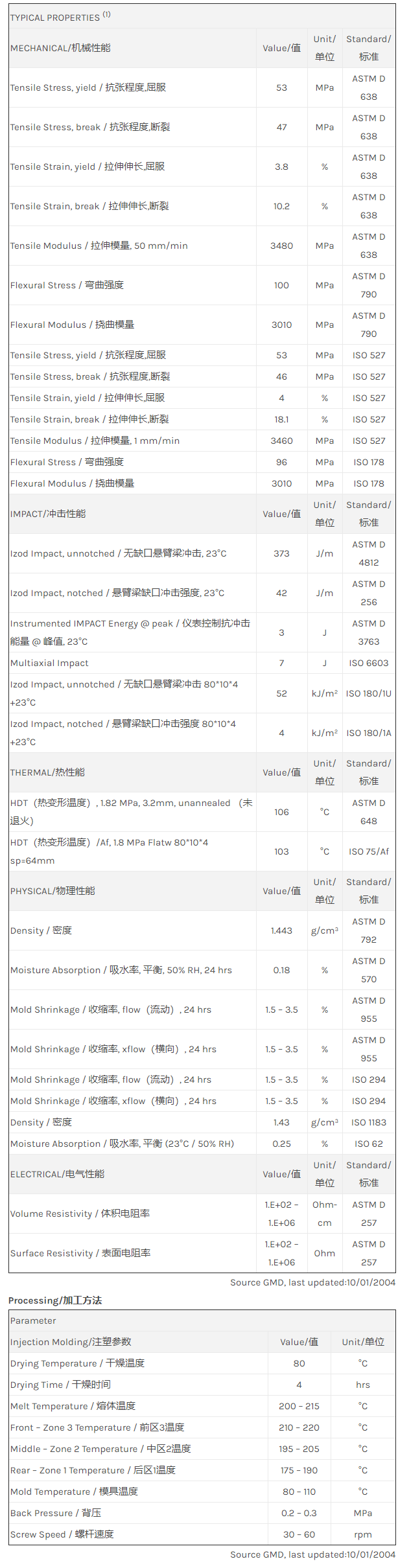 应用范围: 产品描述 LNP Statkon KX02764物性表 “LNP STAT-KON KX02764是一种聚甲醛(POM)共聚物产品,含有的填充物为专有填料,可以通过注射成型进行加工。 典型应用领域为:汽车行业。 主要特性为:传导性。” LNP STAT-KON* KX02764 is a compound based on Acetal resin containing Carbon