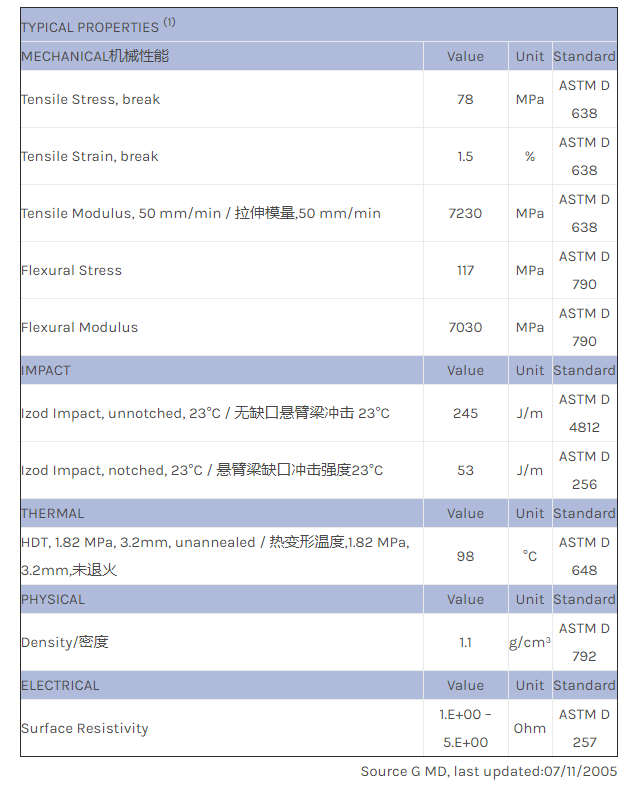 应用范围: 产品描述 LNP STATKON AE002物性表 LNP STAT-KON AE002是一种丙烯腈丁二烯苯乙烯(ABS)材料,含有的填充物为碳纤维增强材料,主要特性为:传导性。