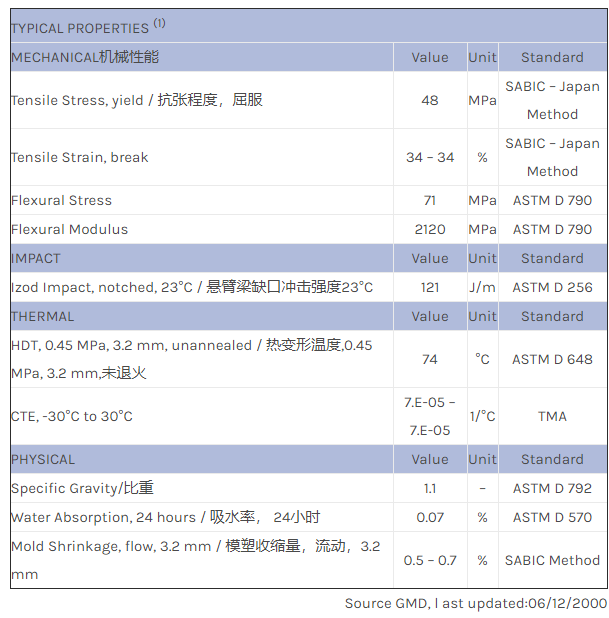 应用范围:产品描述NORYL PPO TVN750M物性表