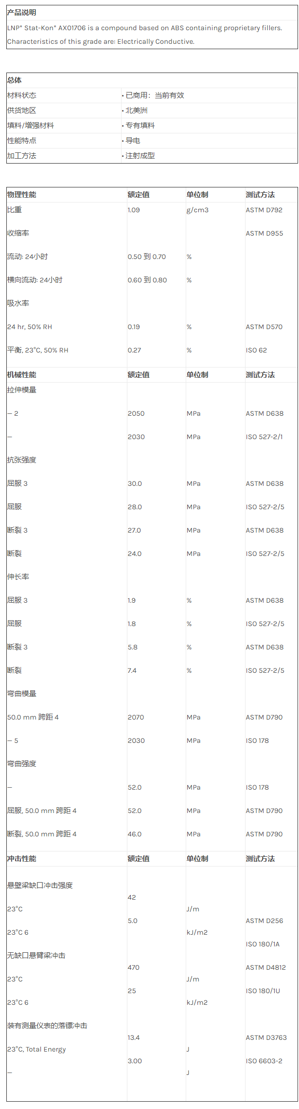 应用范围: 产品描述 LNP STATKON AX01706物性表