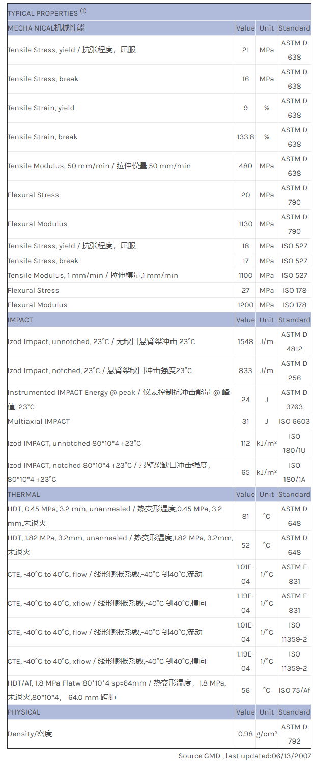 应用范围: 产品描述 LNP STATKON MD000IU物性表 LNP* Stat-kon* MD000IU is a compound based on Polypropylene resin containing Carbon Powder. Added features of this material include: Electrically Conductive, High IMPAC