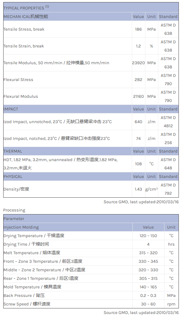 应用范围: 产品描述 LNP STATKON OE006C1物性表 LNP STAT-KON OE006C1是一种线性聚苯硫醚产品,含有的填充物为30%碳纤维增强材料,可以通过注射成型进行加工。 特性包括: 传导性 线性聚合物结构