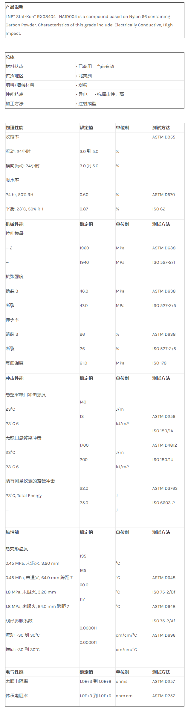 应用范围: 产品描述 LNP STATKON RX08408_NA1D004物性表