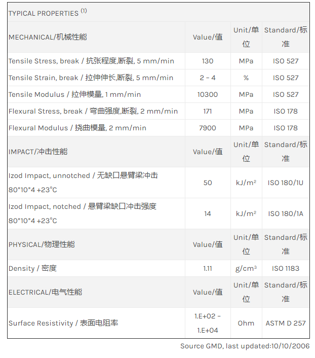 应用范围: 产品描述 LNP Statkon SC004物性表 “LNP STAT-KON SC004是一种聚酰胺12(尼龙12)材料,含有的填充物为碳纤维增强材料。 LNP STAT-KON SC004的主要特性有: 通过ROHS认证 传导性” LNP* Stat-kon* SE004 is a compound based on Nylon 12 resin containing Carb