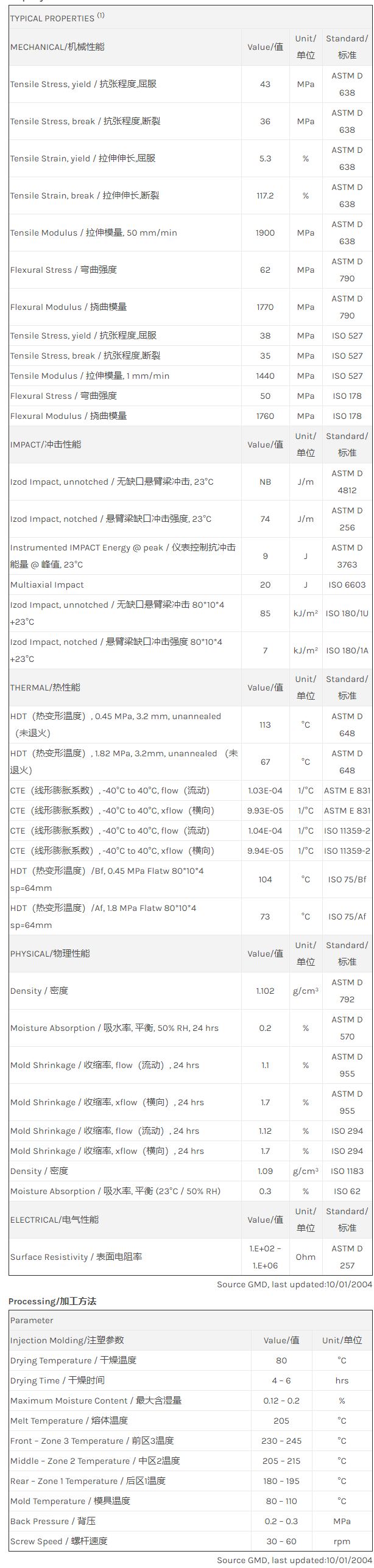 应用范围: 产品描述 LNP Statkon SX90398物性表 “LNP STAT-KON SX90398是一种聚酰胺12(尼龙12)产品,含有的填充物为专有填料,可以通过注射成型进行加工。 典型应用领域为:汽车行业。 主要特性为:传导性。” LNP STAT-KON* SX90398 is a compound based on Nylon 12 resin containing Stai