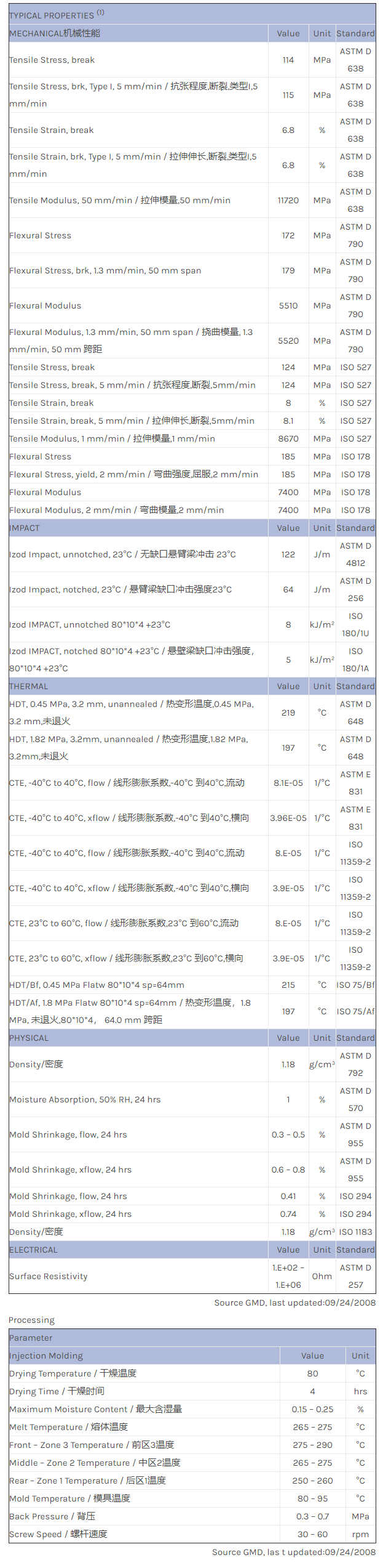 应用范围: 产品描述 LNP STATKON PE002物性表 LNP STAT-KON PE002是一种聚酰胺6(尼龙6)产品,含有的填充物为10%碳纤维增强材料,可以通过注射成型进行加工。 主要特性为:传导性。