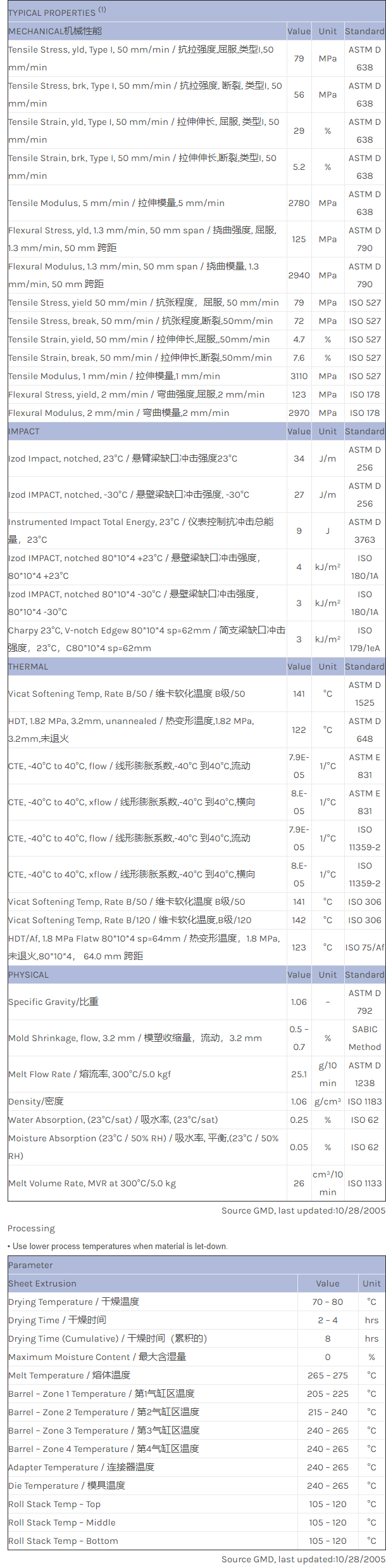 应用范围:产品描述NORYL PPO PX1736物性表NORYL PX1736 resin是一种聚苯醚+PS(PPE+PS)产品,可以通过片材挤出成型进行加工。特性包括:高强度耐热