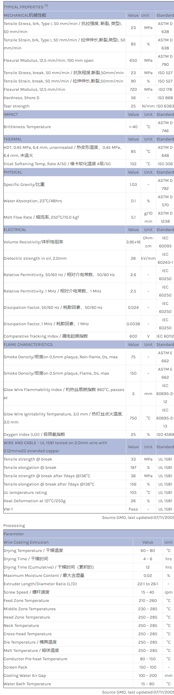 柔软,非卤化阻燃mPPE挤出级,低比重,导线绝缘材料应用等.