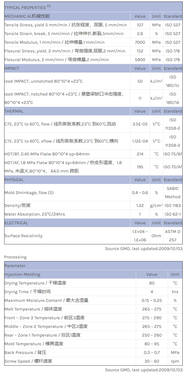 应用范围: 产品描述 LNP STATKON PX93058物性表 LNP STAT-KON PX93058是一种聚酰胺6(尼龙6)材料,含有的填充物为玻璃\炭粉,加工方式为:注射成型。 LNP STAT-KON PX93058的主要特性有: 通过ROHS认证 传导性 加工性能