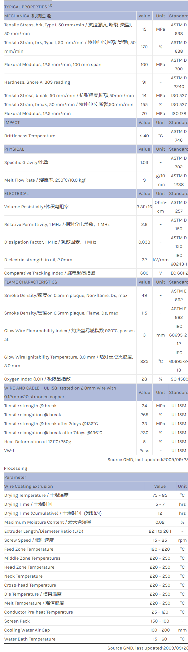 NORYL WCD915 resin是一种聚苯醚+TPE(PPE+TPE)材料,加工方式为:挤压层涂法。