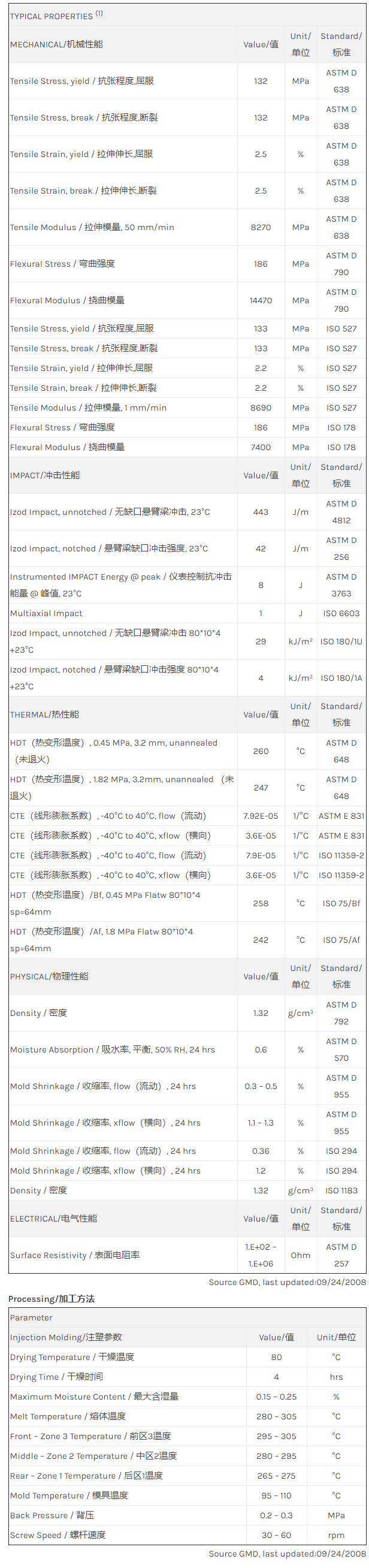 应用范围: 产品描述 LNP Statkon REL42物性表 “LNP STAT-KON REL42是一种聚酰胺66(尼龙66)材料,含有的填充物为碳纤维增强材料,加工方式为:注射成型。 LNP STAT-KON REL42的主要特性有: 传导性 润滑” LNP* Stat-kon* REL42 is a compound based on Nylon 66 resin containing