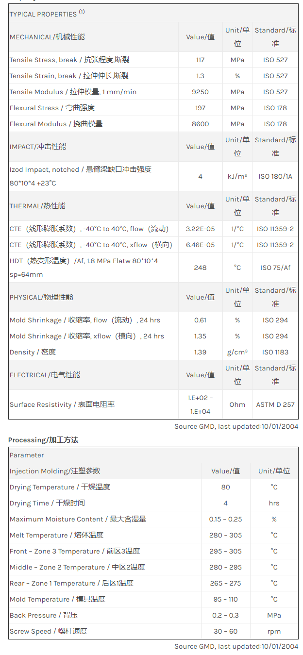 应用范围: 产品描述 LNP Statkon RFD04物性表 “LNP STAT-KON RFD04是一种聚酰胺66(尼龙66)产品,含有的填充物为20%玻璃纤维增强材料,可以通过注射成型进行加工。 主要特性为:传导性。” 相关颜色色号:RFD04-BK1A866 LNP STAT-KON* RFD04 is a compound based on Nylon 66 resin contain