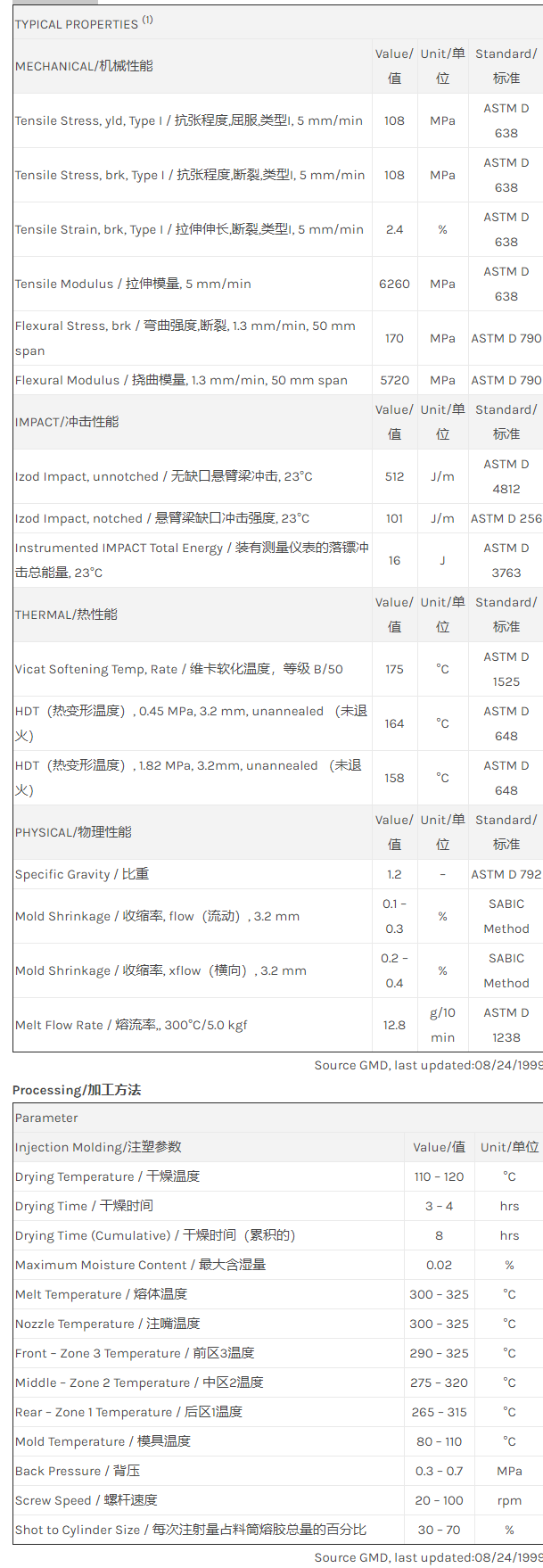 Noryl PPO IGN320物性表