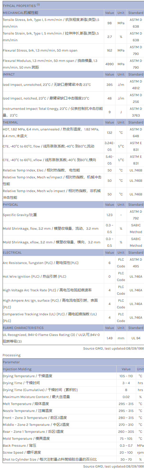 应用范围:产品描述NORYL PPO MX5863物性表SINGLE LOT DATA. 15% glass/mineral reinforced PPE. Nonchlorinated, nonbrominated, flame-retardant. Black and gray only.