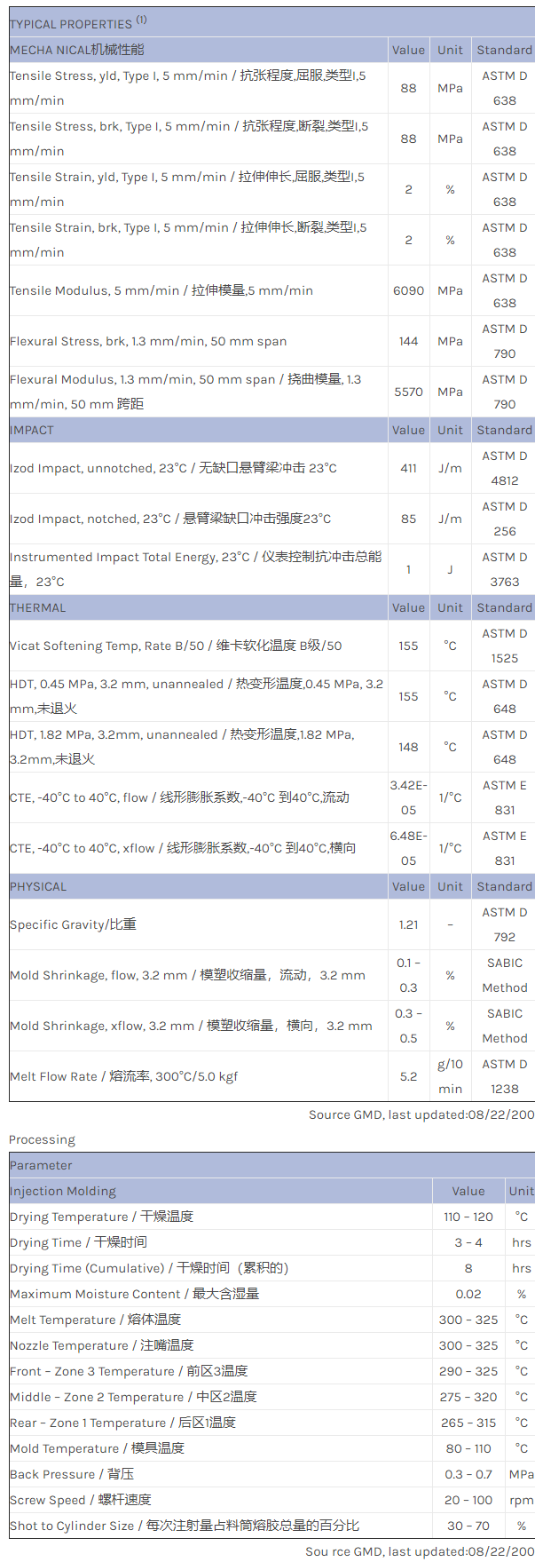 应用范围:产品描述NORYL PPO MX6119物性表Will be commercialized as IGN5531. 20% glass reinforced PPE+PS. Automotive ignitions systems: coil formers, insulators. Japanese translation material.