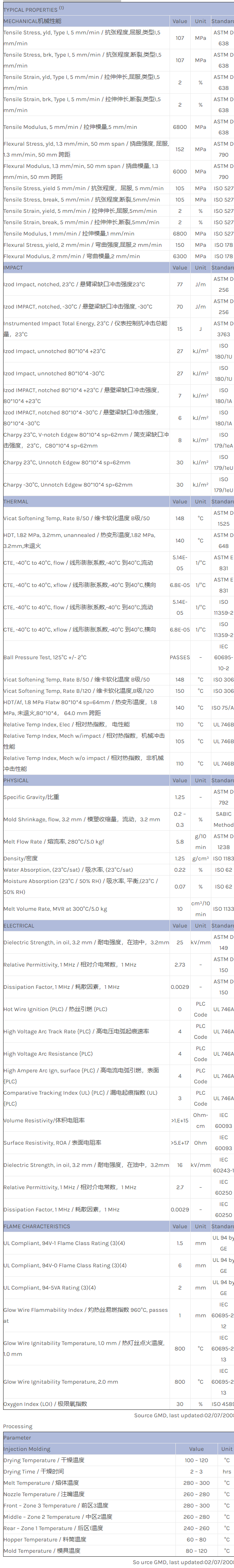 NORYL NH7114 resin是一种聚苯醚+PS(PPE+PS)产品,含有的填充物为20%玻璃纤维增强材料,可以通过注射成型进行加工。
