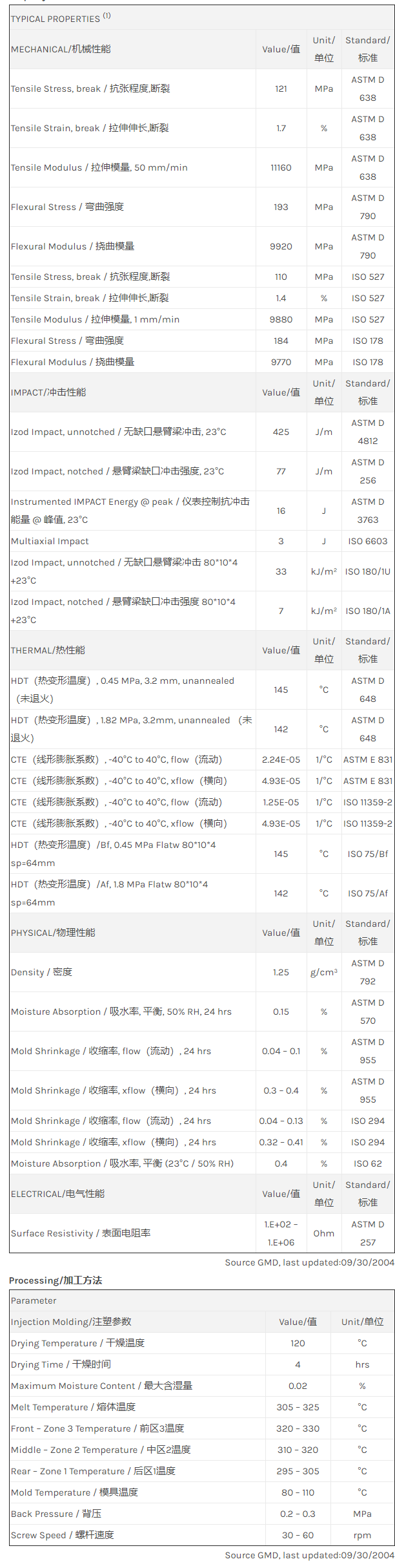 “肇庆LNP STAT-KON DE003P是一种聚碳酸酯(PC)材料,含有的填充物为碳纤维增强材料,加工方式为:注射成型。