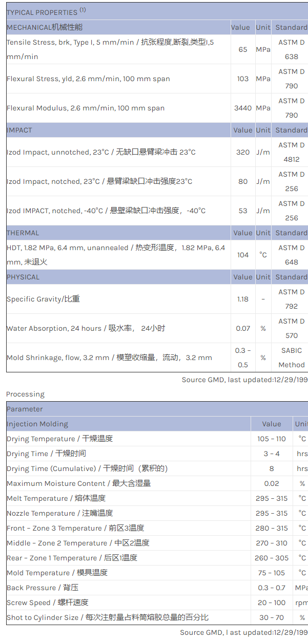 应用范围:产品描述NORYL PPO REN110物性表Recycle PPE+PS blend. 10% GF. This product is under developement.