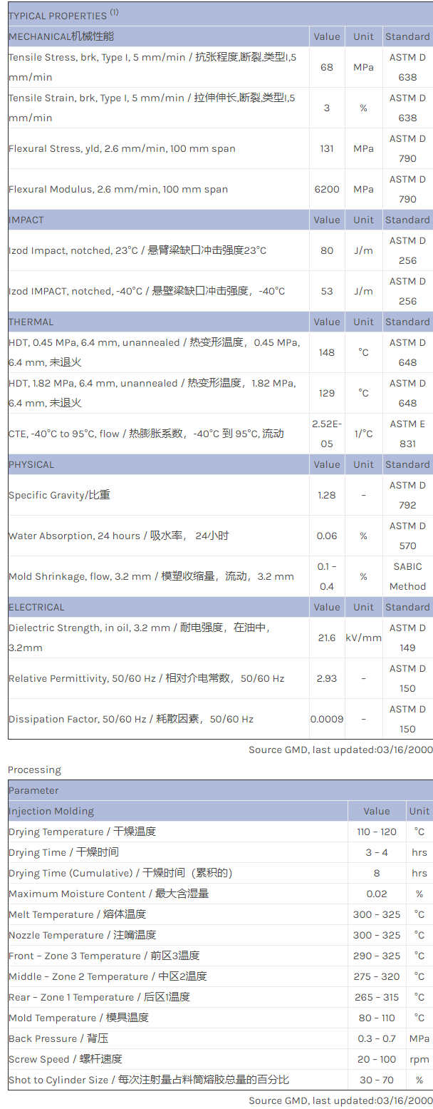 应用范围:产品描述NORYL PPO REN130物性表Recycle PPE+PS blend. 30% GF. This product is under development.