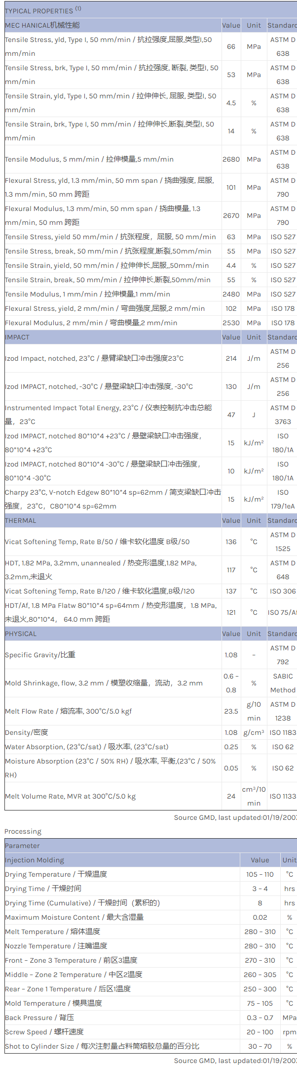 应用范围:产品描述NORYL PPO EXNL0220物性表Noryl* EXNL0220 resin is a modified PPE-PS blend that exhibits an excellent balance of nonhalogenated flame retardance, good chemical resistance, and low specifc gravity for l