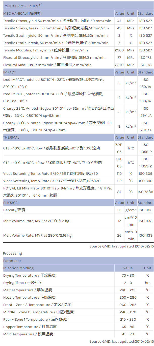 应用范围:产品描述NORYL PPO EXNL1127物性表Noryl EXNL1127 is an unfilled Post Consumer recycle (PCR) based injection moldable modified polyphenylene ether resin comprising at least 40% PCR styrenic series resin content