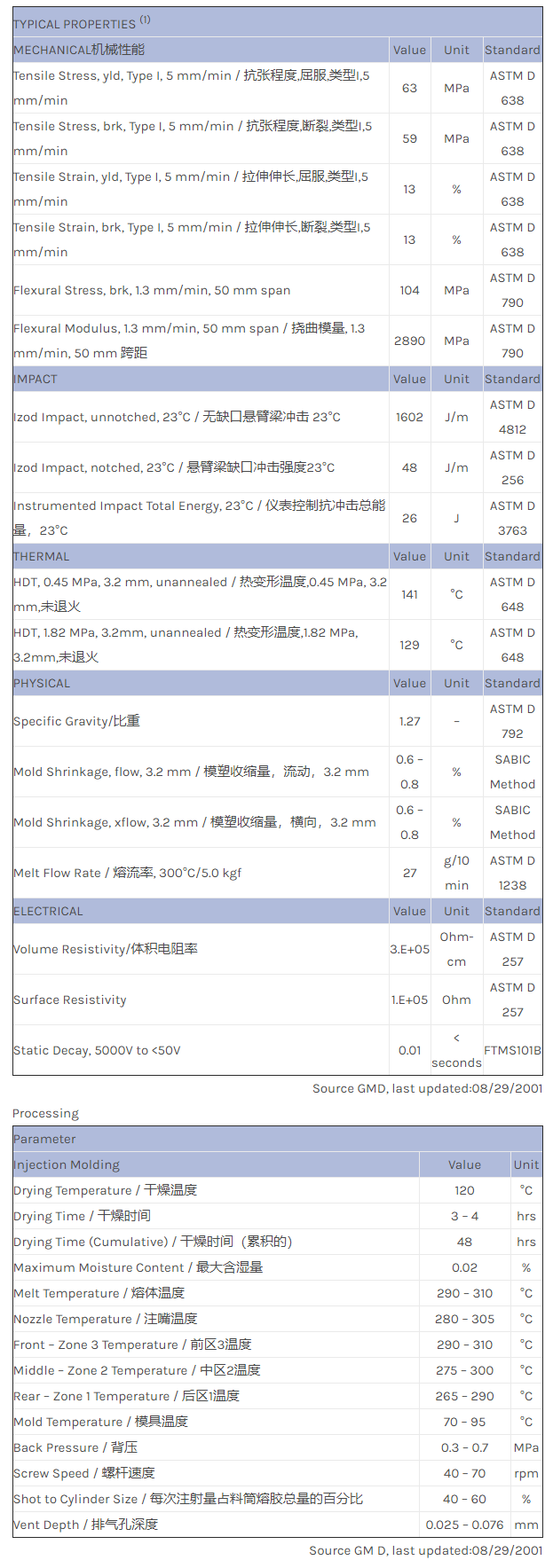 肇庆LNP STATKON Lexan_EXCP0001物性表
